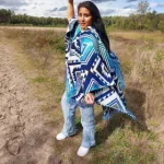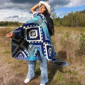 Poncho Entente blauw is de meest populaire uit deze Entente serie, prachtige blauw in een rustig mooie motief